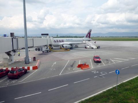 帰国便はQR-0220でまずブカレスト経由ドーハに向かいます。その後ドーハから成田まではQR-0806です。トランクの重量はお土産のせいで増えています。