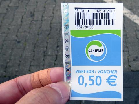 フランクフルトからケルンへ行ってまたフランクフルトの空港に戻ります。朝7時半と出発が何時もより早い。ケルンまでは195km2時間50分かかります。トイレを利用した時にも領収書が出ます。