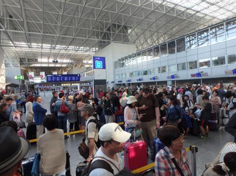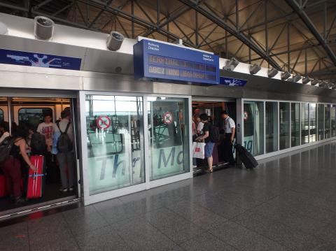 1日遅れの帰国です。モノレールに乗ってJALの出発ロビーへ向かいます。空港は大混雑ですが、問題なくトランクを預け搭乗することが出来ました。