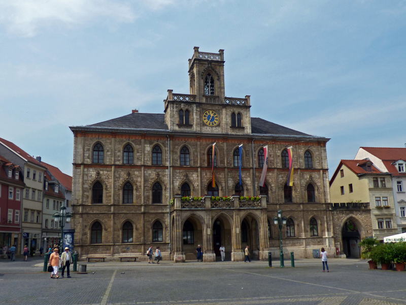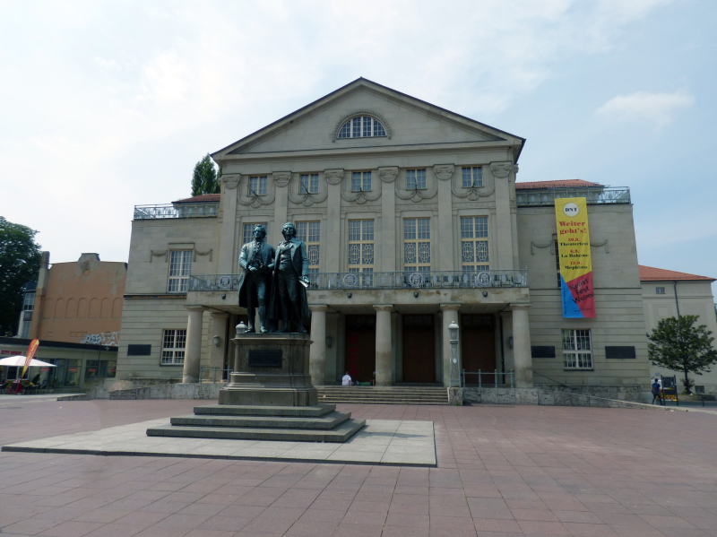 ゲーテ「ファウスト」、シラー「ヴィルヘルム・テル」などが初演された。ゲーテは宰相として劇場監督も兼任していた。その後1848年にリストが監督となり、50年にヴァグナーの「ローエングリン」を初演した他、自身の交響詩「前奏曲」など多くの初演をしている。1889~94年にはリヒャルト・シュトラウスが監督をつとめ、交響詩「ドン・ファン」を初演している。建物は何度か焼失しており、今の姿になったのは1907年のことである。1919年にここで「ドイツ共和国憲法」が制定された。(世界遺産には登録されていない。)
