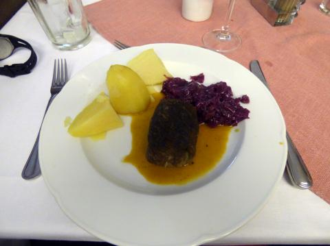 ホテルのレストランは立派なものです。さすがはドイツのスペリアークラスのほてるです。並んでいる料理も種類が多く文句のつけようがありません。いくら取ってもただなので食べ過ぎには注意が必要です。