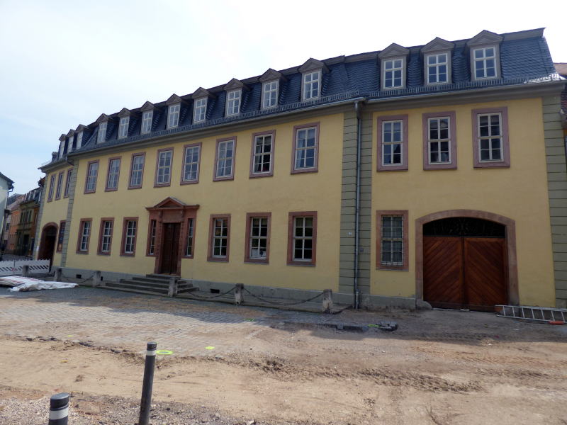 ゲーテは1782年に町の中心部の館へ引っ越し、亡くなる1832年までの50年間をここで暮らした。18世紀初頭に建てられた立派な館で、一階敷地内部に馬車が通れる道が作られている。右端と左端にある大きな扉は屋敷内の道で繋がっており、ゲーテの時代に馬車は一方の扉から入って他方から出てきた。