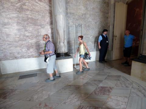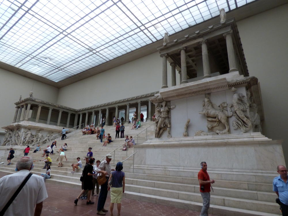 博物館の目玉「ゼウスの祭壇」は、入ってすぐの大きな部屋にある。古代ヘレニズム期のペルガモン王国で建設されたものだが、まず、祭壇の大きさに驚く。しかもこれは全体の3分の1だけ。つまり本当はこの3倍もあるとわけだ。