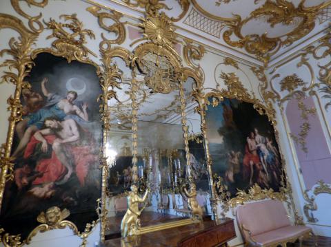 18世紀にフリードリッヒ2世によって建てられた宮殿。後期バロック様式の堂々とした外観が特徴で、迎賓館として使用された。貝殻の部屋、大理石の間など400もの部屋がある。内部に入ると靴の上から履く大きなスリッパを履かされるので歩きにくい。