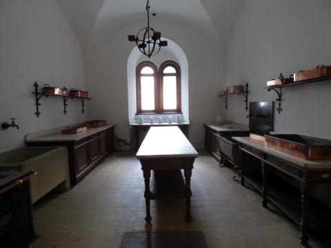 王は、食事の時でさえ中世にいると思いこみたがっていました。彼の食堂は、ヴァルトブルクの歌合戦をモチーフにした装飾が施されていました。 寝室はゴシック様式のインスピレーションによるもので、ディテールさえもワーグナーのオペラ、たとえば洗面台は、ワーグナーのオペラ「ローエングリーン」のオマージュである、白鳥の形をした蛇口を備えていました。
