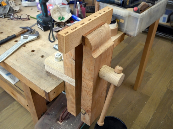 久しぶりの木工です。ベンチバイスは現在使っている作業台に付いていますが、作業台と同じ高さにあります。作業内容によってはこれで十分ですが、もう少し高い位置にあった方が使いやすい場合があります。そこでパラレルクランプベンチバイスを作ることにしました。すべて手持ちの材木、ボルトナットを使いました。作り方は下の写真をクリックすると見ることが出来ます。 |