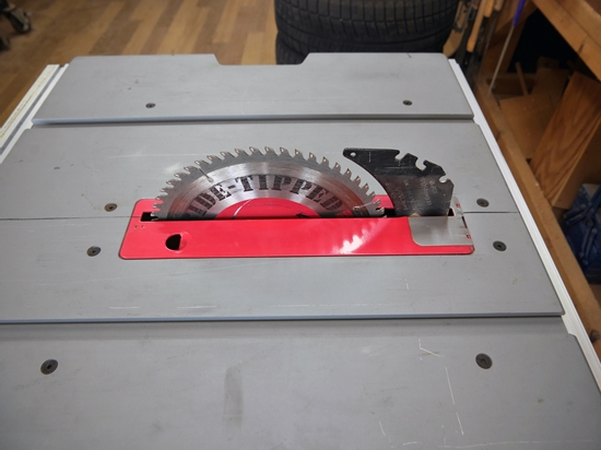 テーブルソーが無いと何かと不便なので、一度は売り払いましたが、また購入することにしました。購入する機種は藤原産業のSTS-255ETの一択です。前モデルは使い物になりませんでしたが、この現行機種は値段の割に良く出来ています。以前は1万円台で購入できましたが、今は2万8千円ぐらいします。そこでヤフオクを見ると安いのがありましたが、上部カバー、マイターゲージ、押し棒が欠品です。これらの部品は自作できるので、このヤフオクの物を購入しました。 |