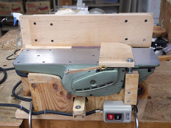 以前に購入してあったマキタの155mm幅の電気カンナを使って、手押しかんな盤を作りました。155mmの幅なのでDIY用としては十分なものです。製作の進行状況は下の写真をクリックして動画を見てください。 |