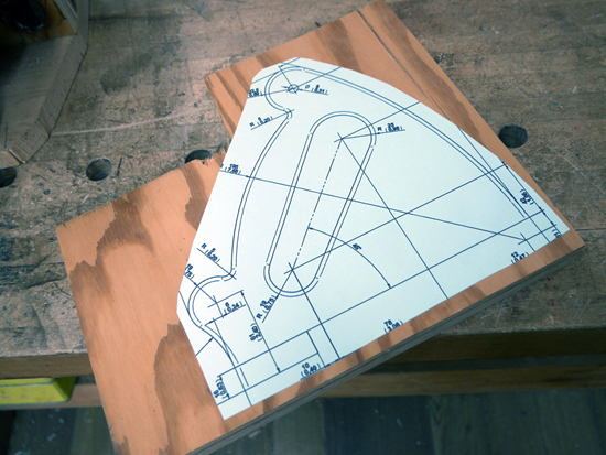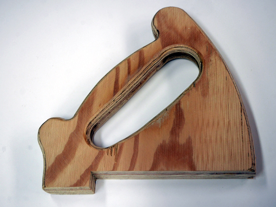 手押しかんな盤が出来たので、プッシュスティックも作ってみました。ネット上に公開されている図面を使って作りました。図面を合板の上に貼付け穴あけ、カットを行いました。これで安全に手押しカンナ盤を使えるようになります。下の写真をクリックすると動画を見れます。 |
