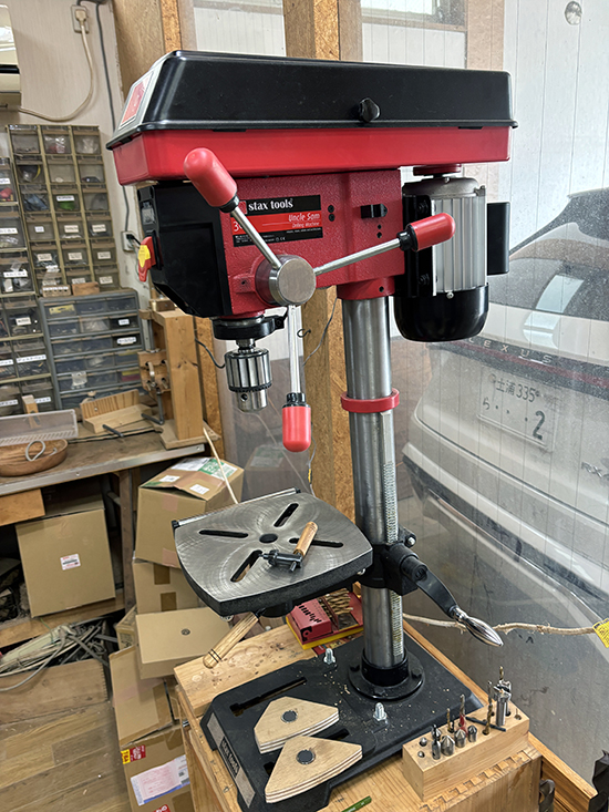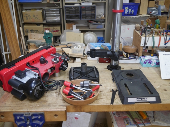 小形のボール盤を使っていたが、やはり役不足で使いにくい。P-Toolsが展示品を割引価格で販売していたので買ってしまった。注文するとすぐに商品は到着したので早速組み立てた。簡単な作業で組み立て完了です。台は手持ちの材木を入れていた箱を流用してすぐに使えるようになった。組み立ての動画は下の写真をクリックすると見ることが出来ます。 |