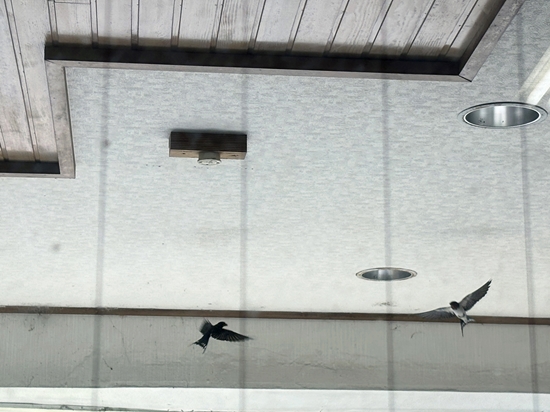 ある日の朝、車庫の車の上に泥が落ちているではありませんか?上を見るとツバメが巣を作っていました。電灯の傘の部分に泥を積み上げているところで少しだけ出来ている状態でした。この車の真上の位置に巣を作られると車の上に糞が落ちてくるので、非常に困ります。早速電灯を取り外して巣を作れない様にしました。しばらくするとツバメがやってきて大騒ぎをしています。壁際だと糞が落ちても問題ないので、巣を作りやすいよう棚を作っていますが、ツバメはこの棚は気に入らないようです。車が1台の時はこの車庫に車を置かないようにしたので、5羽のツバメが巣立ちました。しかし今は車が2台あるので、車を移動出来ません。ツバメには申し訳ない気持ちでいっぱいです。 |