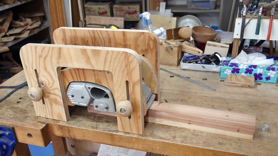 平行な板材を得ようとすると、手押しかんな盤と自動カンナ盤が必要になります。手押しかんな盤でまず片面の平面を出します。反対側も手押しかんな盤で削っても板は平行になりません。自動カンナ盤が必要になります。最近は物価が上がっており、8万円ぐらい出さないとDIY用の自動カンナ盤が出に入りません。そこで手押しナンカと同様に自作しました。製作の動画は下の写真をクリックしてください。 |