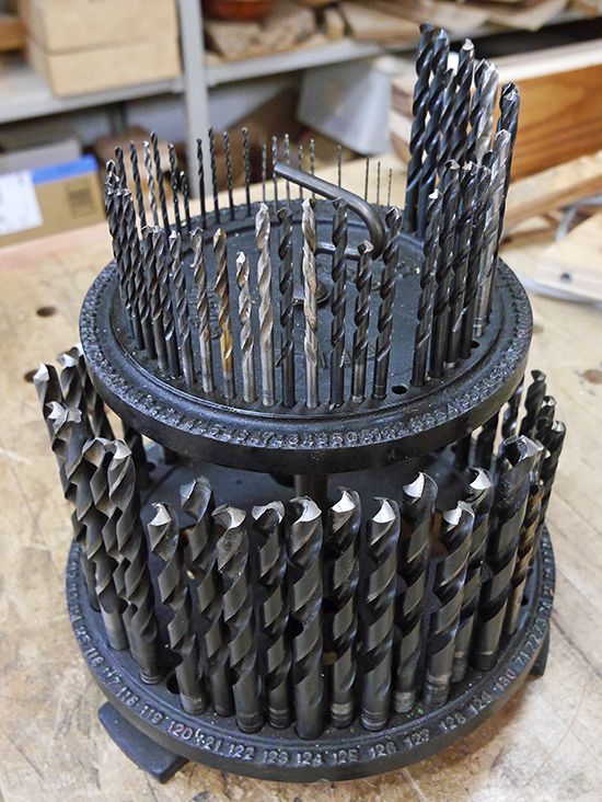 直径1mmから13mmまでのドリルビットを収納できるドリルスタンドを購入しました。上下の円形の台は回転し、必要な太さのドリルを探し易くまた取り出し易くなっています。以前使っていたプラスティックの物に比べると使いやすさは抜群です。鋳物で出来ており重量があります。 |