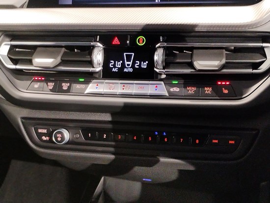便利な物理スイッチ | エアコンの温度調整、ドライブモードセレクト、ナビ操作のコマンドダイヤルが付いており、物理スイッチなので操作がやりやすい。また自由に操作を割り当てることが出来る、8個のプログラムボタンも非常に便利に使える。新モデルのF70では全てナビ画面の中に入ってしまったので、非常に使いにくいがF40は物理スイッチがあるのが良い。 |